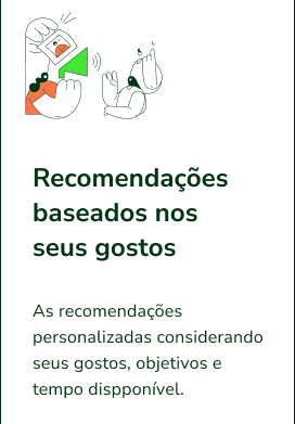 As recomendações personalizadas considerando seus gostos, objetivos e tempo disponível.